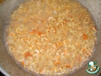 Потом осторожно налить воды/бульона (будет шипеть), чтобы покрыла макароны. |