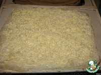 Тщательно смазываем первый лаваш майонезом и укладываем на него вдоль соленый сыр-лапшу( чечел). |