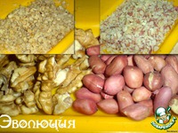 Итак, приступим. Орехи измельчаем. Но не в пудру, а так, чтоб кусочками :-) Орехи предварительно прокаливать (обжаривать) не надо. Добавляем к орехам немного сахара. Добавляем по вкусу. |
