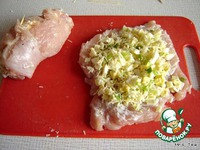 Вареные яйца и лук нарезать небольшими кусочками. Сыр натереть на крупной терке. Смешать яйца, лук и сыр. На отбитый кусок филе положить начинку |