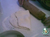 Свернули тесто конвертиком и раскатали скалкой |