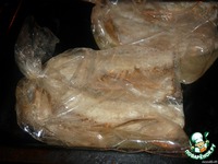 Филе нежно натираем солью и белым перцем. Заворачиваем в пищевую пленку или кладем в пакет для запекания (шкурой вверх!), и в духовку при t 100 на 1 час (если рыбка меньше, то быстрее). |