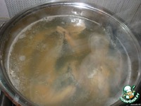 Через 5 минут осторожно вынимаем голову, ставим остывать. Бульон варим еще 20 мин. |