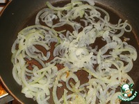 2. Пока рыбка маринуется, нарезаем лук полукольцами и немного обжариваем на растительном масле. Если лук не обжаривать, а добавить сырым, то он может не пропечься. |