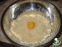 Смешать 9 ст. ложек муки с 3 ст. ложками сахара. Добавить 100 гр размягченного масла и 1 желток. Все смешать и вылепить шарик. |