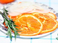 Лук и мандарин (1шт.) нарезать тонкими кольцами. |