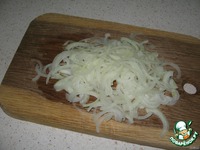 Лук чистим и нарезаем очень тонкими полукольцами и разделяем на составляющие. |