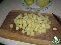Отваренный в мундире картофель очищаем и нарезаем кубиками, как на "оливье". |