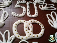 Рисовала потоньше и потолще, украшала бусинками. К утру уже все засохло. Очень хрупкое, до торта дошло процентов 30. |