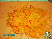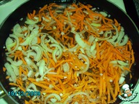 В сковороду с водой кладём лук, морковь и ставим на огонь. Тушим мин 5-7. |