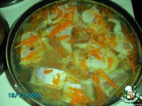 Затем выкладываем кусочки рыбы, тушим до полу готовности. Солим по вкусу. |