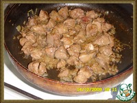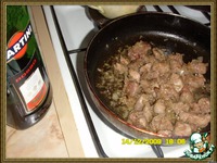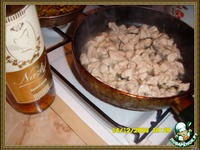 влить в мясо вермут (заменила чуть коньяком), взбитые сливки, посолить, поперчить |