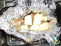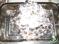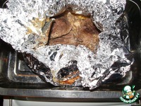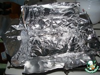 Закрываем фольгой и также оставляем маленькую дырочку и ставим в духовку на 30 минут ещё. |