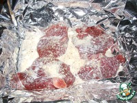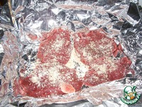 Мясо посыпаем любимыми приправами. Я посыпала итальянскими травами, для гриля и ещё посыпала 1 кубиком (крошка Кнор) лук. Соль, перец. |
