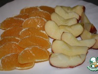 Апельсины разобрать на дольки. Яблоки нарезать толстыми дольками, удалив сердцевину, затем сбрызнуть соком лимона, чтобы избежать потемнения. |