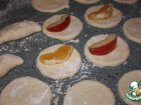 Сложить кружки пополам, смазав края и защипать. Смазать яйцом. |