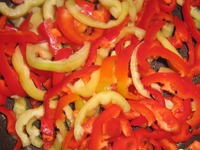 Перец нарезать соломкой, добавить к овощам. |
