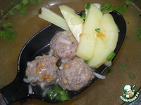Описание: Просто фрикадельки похожи на маленькие "бомбочки", я бы назвала этот супчик диетическим, потому как ни жирного мяса, ни зажарки тут не будет...