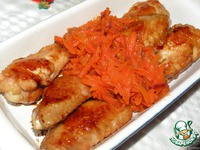 Описание: Были крылья и вспомнился мамин рецепт рыбки под морковным "маринадом"... Типа лошадь перемножили с сапогами и получилась.... Вкусняшка!
