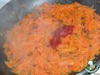 Лук мелко нашинковать, морковь натереть на крупной терке, тушить на среднем огне 5 мин, добавляя воду, добавить томатную пасту, соль, сахар и доводить до готовности, пока морковка не перестанет быть хрустящей, добавляем столовую ложку маринада от курочки перед снятием с плиты - тадЫ готово... Снимаемс..