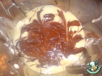 Готовим крем: шоколад я предварительно растопила в микроволновке (2 минуты), можно сделать тоже самое на водяной бане. Смешать творог, сгущенку и шоколад. |