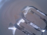 В охлажденные белки добавляем несколько кристалликов соли (только не много - нам не нужен соленый крем!) и взбиваем в крепкую пену. Добавляем остывший желтковый крем и еще взбиваем. |