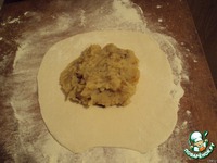 Раскатываем тесто, добавляем начинку (в моем случае - это картошка с луком). |