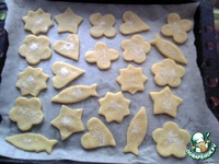 Выложить фигурки на противень (сверху присыпать сахаром), выстланный пергаментной бумагой и поставить в разогретую духовку на 15 мин. при 150-160 С. |