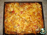 Посыпаем сыром и сверху майонезом, аккуратно размазываем и в духовку на 30 мин 180 градусов. (время зависит от духовки, ориентируйтесь по цвету майонеза, напоминает румяную корочку). |