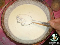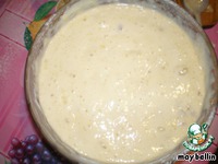 Приготовим тесто. Для этого взобьем 3 яйца с сахаром и сметаной. Добавим туда муку и разрыхлитель. |