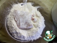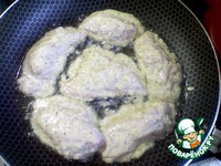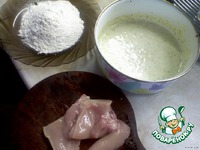 Обвалять каждый кусочек сначала в муке, а потом в яично-луковом кляре, |