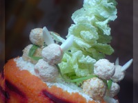 Еще я в закипевшие сливки добавила немного шафрана, и крем стал веселенького желтого цвета. Пробуем остывший крем, добавляем, что душа и желудок требует: соль, зелень, чеснок.