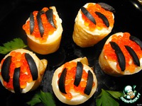 Маслины нарезать полосками, выложить на икру. Приятного аппетита!!!! |
