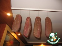 Затем вынимаем из маринада и обмазываем со всех сторон, корочка должна покрыть мясо равномерно, сушим в подвешенном виде ещё примерно неделю... |