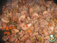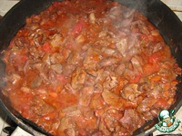Добавляем порезанные помидоры в собственном соку или томатную пасту. Солим и перчим по вкусу и варим на медленном огне 20 мин. Подаем с полентой или с овощами. Приятного аппетита! |