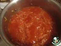 На крупной терке натираем свеклу и отправляем к овощам, добавляем 1 ч.л. уксуса, накрываем крышкой и даем потомиться. |