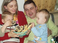 Итак, полкилограмма печенья измельчаем в крошку. Два сынишки - Руслан (скоро ему 4 года) и Назар (ему год и 5 месяцев) с этим справились. |