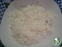 Рис варим до полуготовности. Промываем холодной водой. Откидываем рис на дуршлаг, чтобы вся вода стекла. |