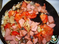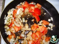 Обжарить нарезанный кубиками лук, помидор, шампиньоны. |
