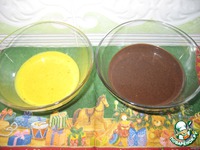 Взять 2 чашки, в одну положить куркуму и 50 гр сахара (при желании добавить цедру), в другую какао и 50 гр сахара. Залить горячим молоком, перемешать. |
