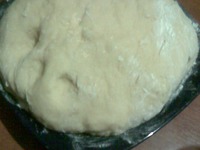 Затем отрываем от теста третью часть. Скатываем шарики размером побольше грецкого ореха. Внутрь каждого шарика закатываем мятную карамельку. |