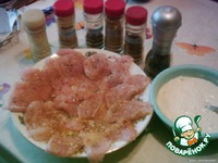 Посыпать мясо приправами, посолить, поперчить и дать пропитаться 10-15 минут. |