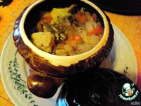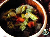 Вот и овощи поспели. Отвар процедить. Овощи разложить по горшочкам. |