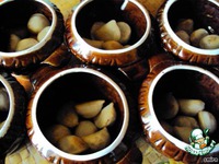 Разложим грибы по горшочкам. |