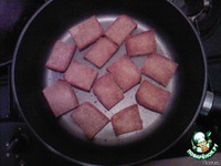 Хлеб режем на четвертинки (черную корочку я срезаю) и обжариваем на масле с двух строн до золотистой корочки. Даем остыть. |