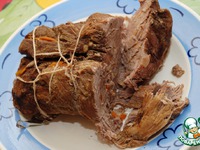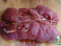 Мясо связываем ниткой. Лучше связать его сильнее, я слабовато замотала. |