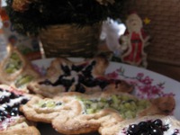 Вот так они выглядят после 15 мин. в духовке :-) Некоторые борта дали течь, ну да ничего, значит надо было их побольше сделать, или кисель покруче :-) |