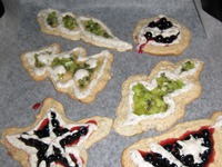 Бумагу положить на противень, аккуратно выложить по 2 ч.л. на узоры и разровнять. Выпекать 15 мин., оставив дверцу духовки чуть приоткрытой. |