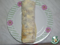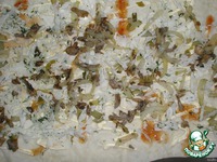 Берем лаваш, смазываем майонезом, соусом. Равномерно посыпаем капустой, огурцами и грибочками. Можно добавить и сыр. |