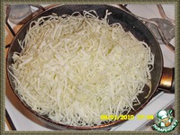 Добавляем шинкованную капусту к луку. Также слегка обжариваем капусту минут 10. Оставляем начинку до полного остывания. В это время готовим тесто. |